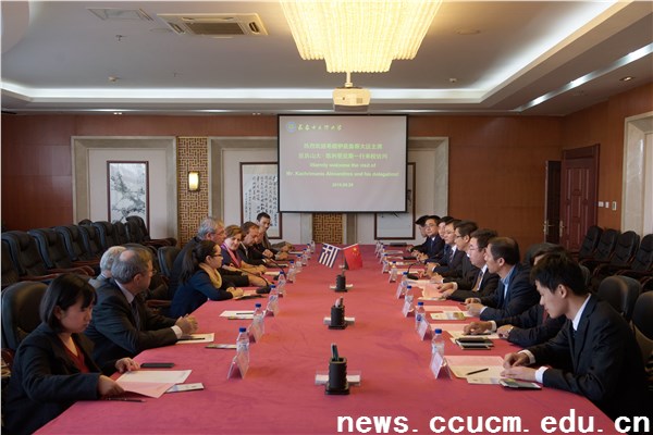 9月29日,由希腊伊庇鲁斯大区主席亚历山大•凯利曼尼斯率领代表团一行8人应邀来我校访问,校党委书记张兴海,副校长冷向阳、邱智东会见了来宾。