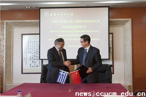 会谈结束后,张兴海书记代表学校与约阿尼纳大学校长乔治·卡普萨里斯签署合作协议,两校将在人员交流与往来、学生互派、在希腊设立中医传统诊疗中心等方面进行更多合作与探索。约阿尼纳大学成立于1964年,目前全球排名已进入前500强,在校师生2万余人,是一所发展迅速的综合性大学,下设17个院系,其医学院在希腊排名第一。希腊希中友好协会副会长贡托斯先生、约阿尼纳市长托马斯·麦卡斯先生参加了座谈并表达了与我校合作交流的意愿。